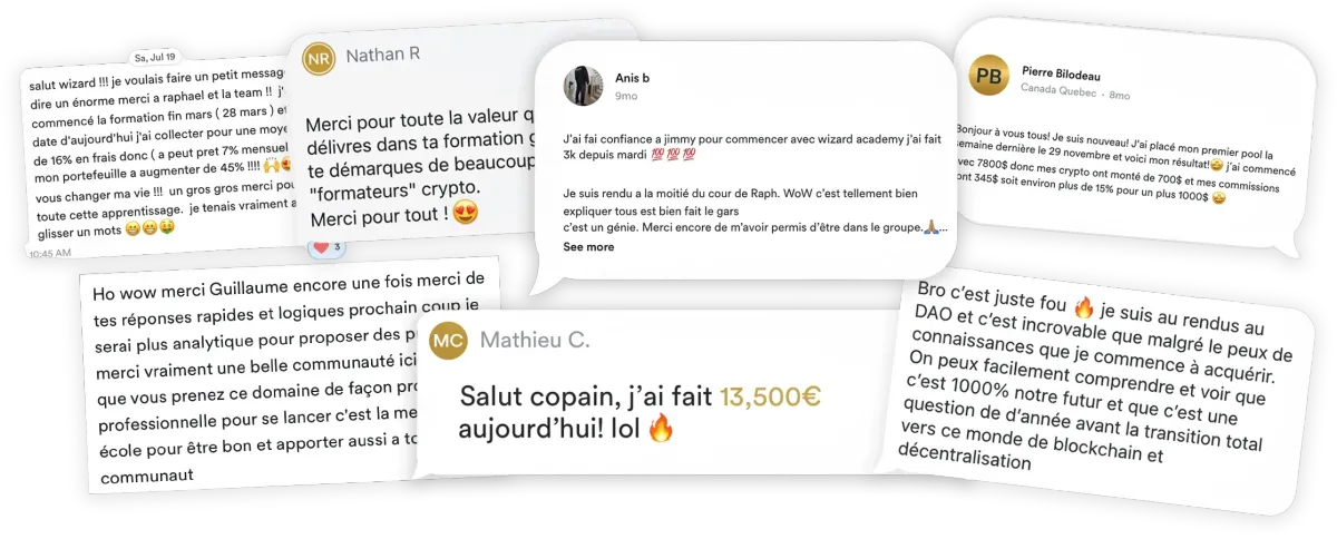 Aucune. Nous reprenons tout depuis zéro : vocabulaire, mise en place de ton portefeuille crypto, sécurité et stratégies de croissance.